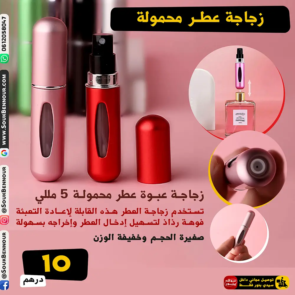 زجاجة العطر الصغيرة المحمولة هي الحل المثالي للحفاظ على رائحة منعشة طوال اليوم. بحجم صغير وخفيف يمكن وضعه بسهولة في الجيب أو حقيبة اليد، لتتمكن من استخدامه أثناء الحفلات، السفر، الأعمال، أو أي نشاط خارجي. تصميمها العصري والأنيق يجعلها مناسبة لجميع المناسبات ويعطيك شعورًا بالثقة طوال الوقت.