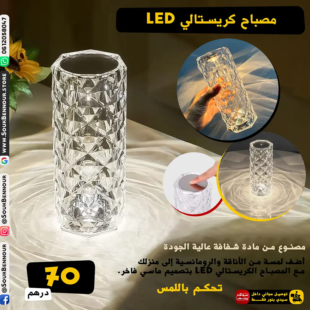 أضف لمسة من الأناقة والرومانسية إلى منزلك مع المصباح الكريستالي LED بتصميم ماسي فاخر.