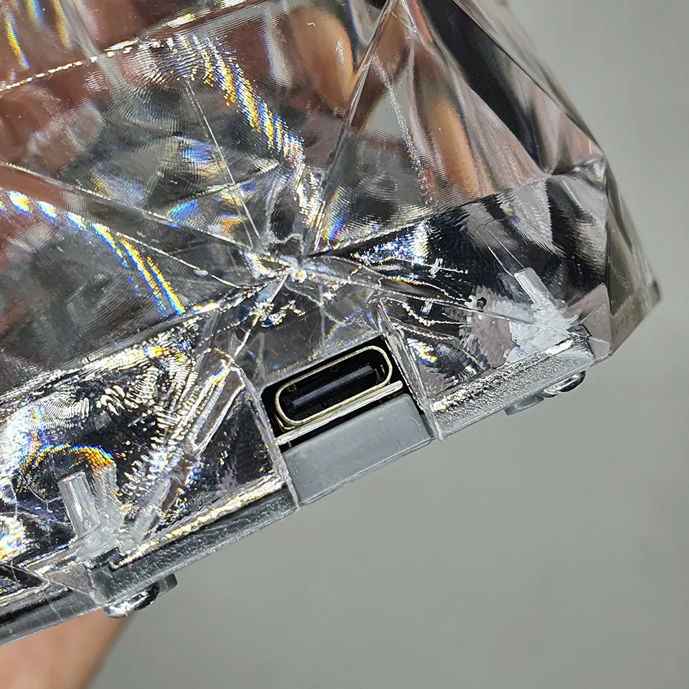 مصنوع من مادة شفافة عالية الجودة (PC) تمنح تأثيرًا بصريًا رائعًا يشبه انعكاس الألماس عند تشغيله.