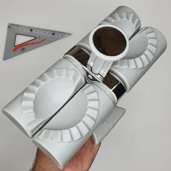 فقط ضع عجينة الزلابية والحشوة في المكان المخصص، ثم اضغط برفق لتحصل على زلابية مثالية الشكل في ثوانٍ – حتى الأطفال يمكنهم استخدامها بسهولة. -