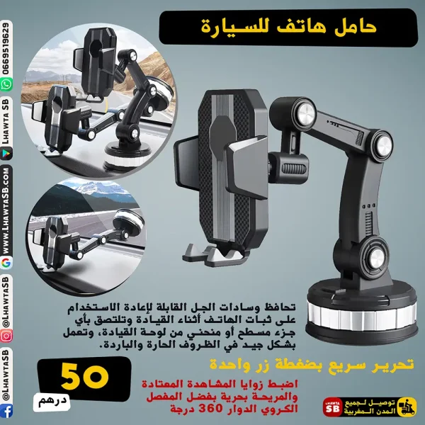 🚗 حامل هاتف السيارة بكوب شفط – تثبيت آمن ومرن لهاتفك