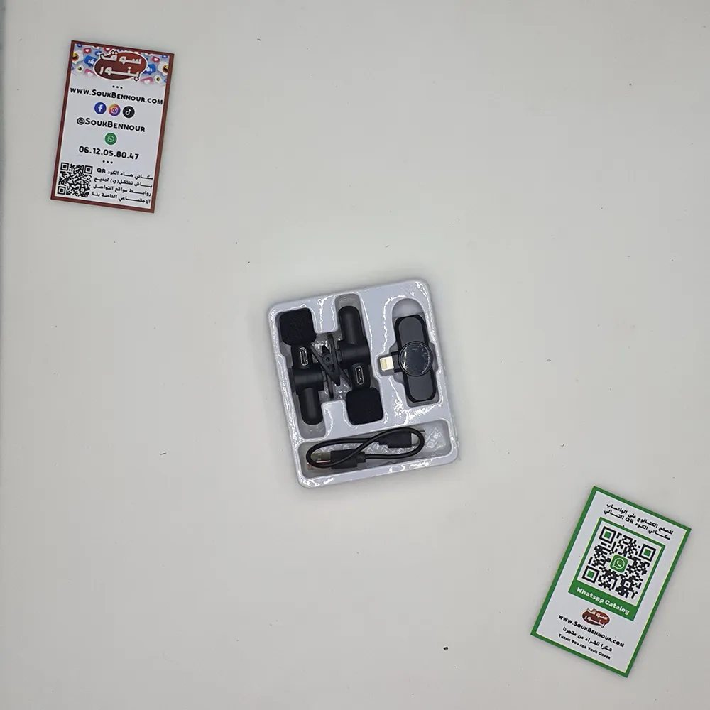 ميكروفون Lavalier لاسلكي مزدوج 2.4 جيجاهرتز صُمم لتسجيل الصوت والفيديو بجودة عالية، مثالي للبث المباشر، الألعاب، المقابلات، والفيديوهات التعليمية. صغير الحجم وخفيف الوزن، سهل التوصيل والاستخدام مع أجهزة iPhone، iPad، Android، Xiaomi، Samsung وغيرها.