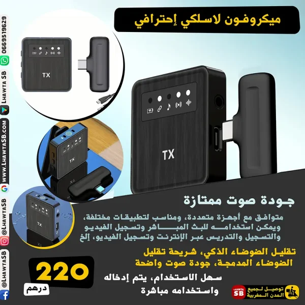 ميكروفون اللاسلكي الذكي – صوت واضح وتقليل ضوضاء احترافي