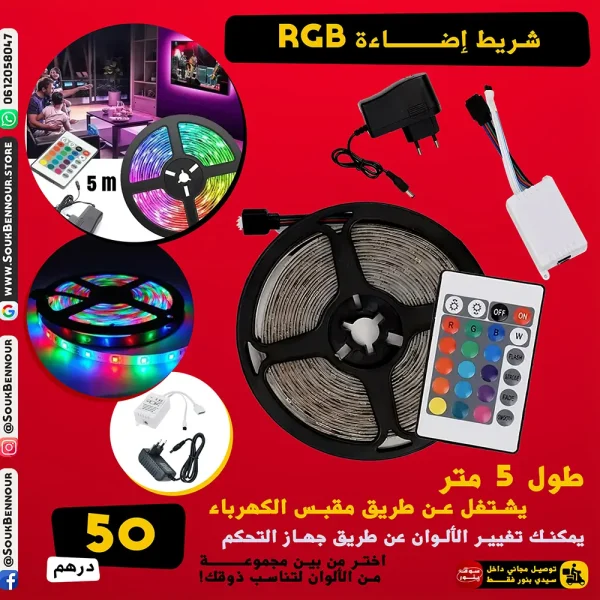 • خيارات الألوان: أبيض – أبيض دافئ – أحمر – أزرق – أخضر – RGB (متعدد الألوان)