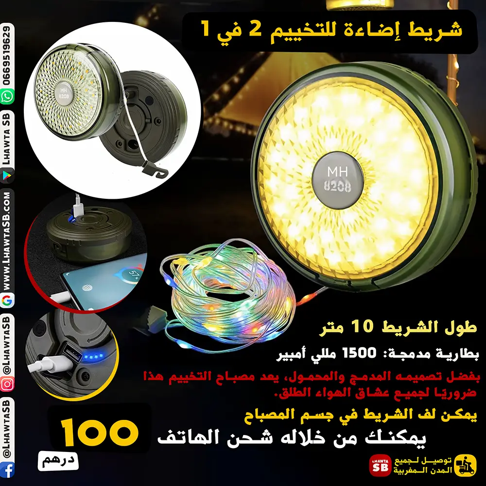 5. مصباح محمول وعملي، ضروري لجميع عشاق التخييم والرحلات الخارجية.