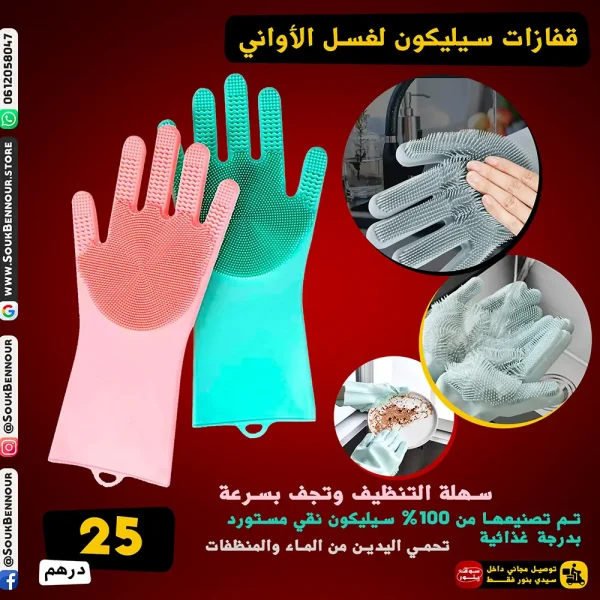 حوّل تجربة تنظيف مطبخك إلى مهمة سهلة وممتعة مع قفازات السيليكون الذكية المصممة لتوفير تنظيف فعّال دون الحاجة إلى مواد كيميائية قاسية. تجمع بين الراحة، الكفاءة، والمتانة في منتج واحد مثالي لكل منزل.