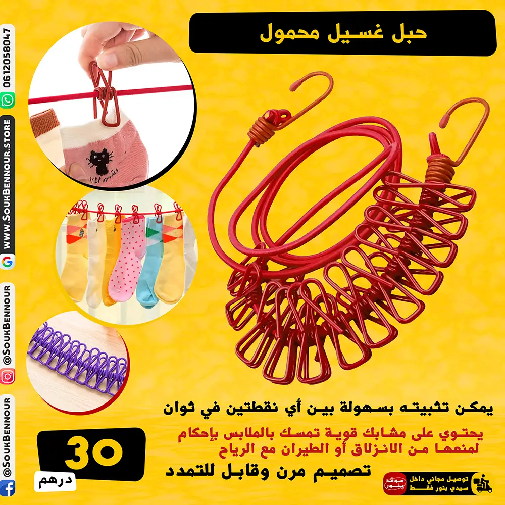 اجعل تجفيف ملابسك في أي مكان أسهل وأسرع مع حبل الغسيل المحمول المقاوم للرياح، المصمم خصيصًا للسفر، التخييم، والرحلات الخارجية.