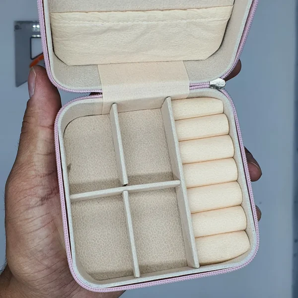 تساعدك هذه العلبة على تنظيم وحفظ الخواتم، الأقراط، السلاسل والأساور بطريقة مرتبة وآمنة أينما ذهبتِ.