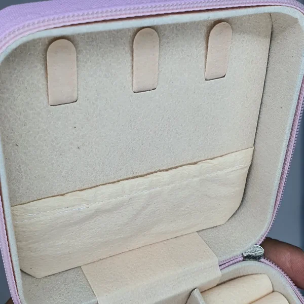 تعتبر هذه العلبة الرفيق المثالي في السفر، فهي تحافظ على مجوهراتك منظمة وسهلة الوصول، مما يضيف لمسة من الراحة إلى رحلاتك.