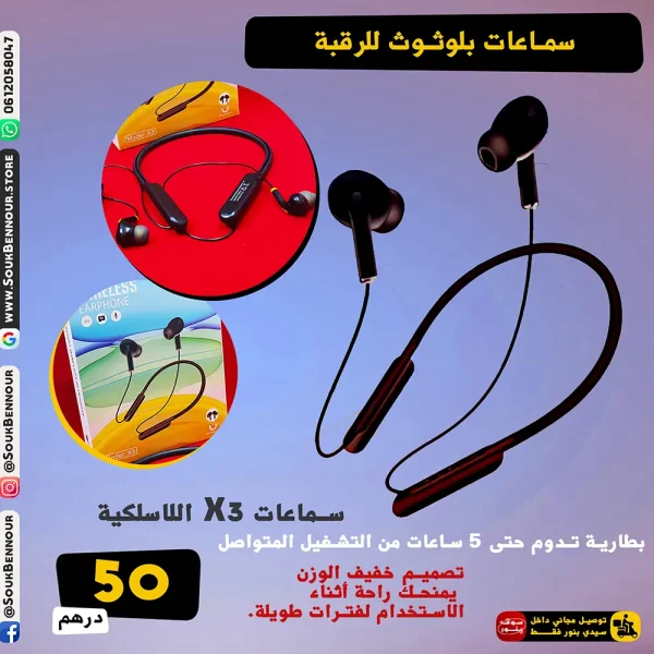 🖤 سماعات X3 اللاسلكية – تصميم أنيق، أداء قوي، وصوت عالي الجودة أينما كنت.