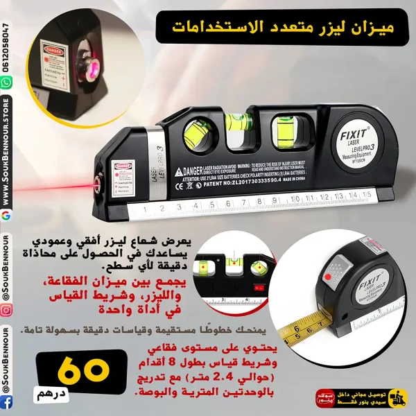 💡 وفر الوقت واحصل على نتائج احترافية مع ميزان الليزر المتعدد الوظائف – الأداة المثالية لكل من يبحث عن الدقة والسرعة في القياس والتثبيت.