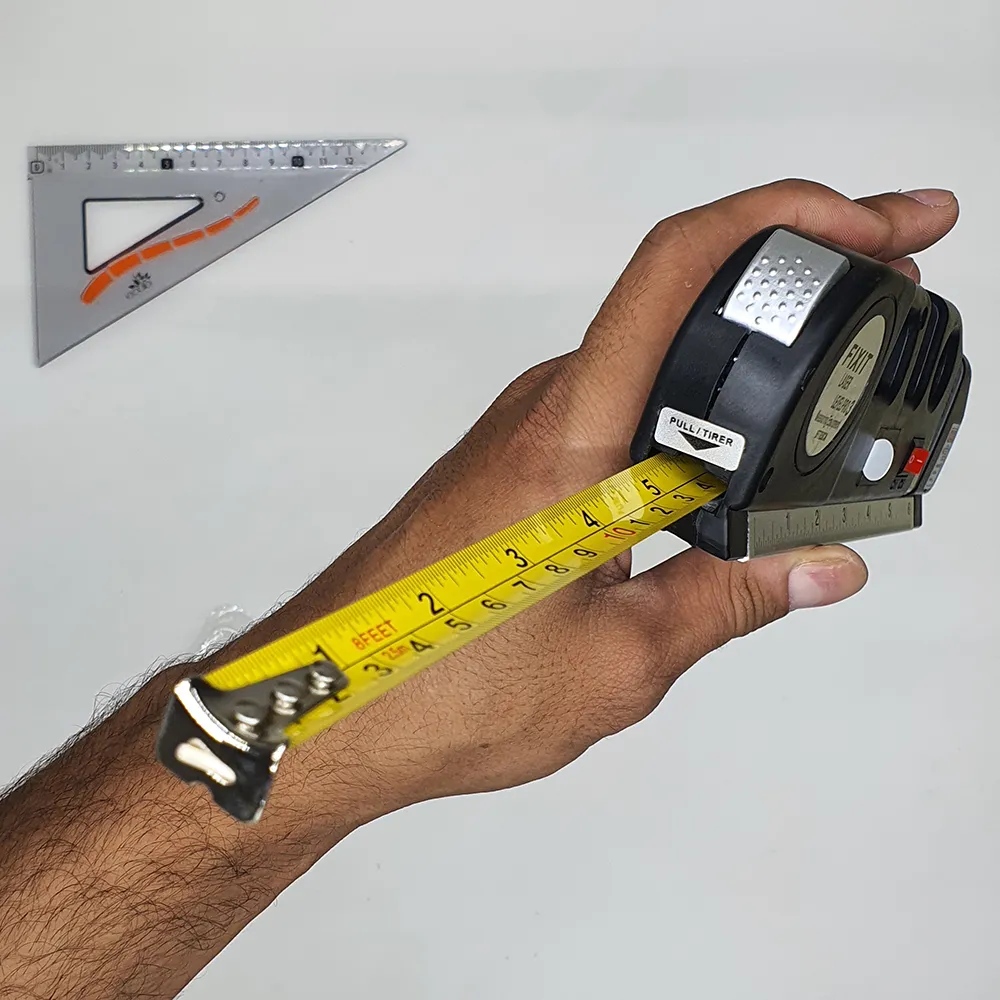 يحتوي على مستوى فقاعي وشريط قياس بطول 8 أقدام (حوالي 2.4 متر) مع تدريج بالوحدتين المترية والبوصة. -
