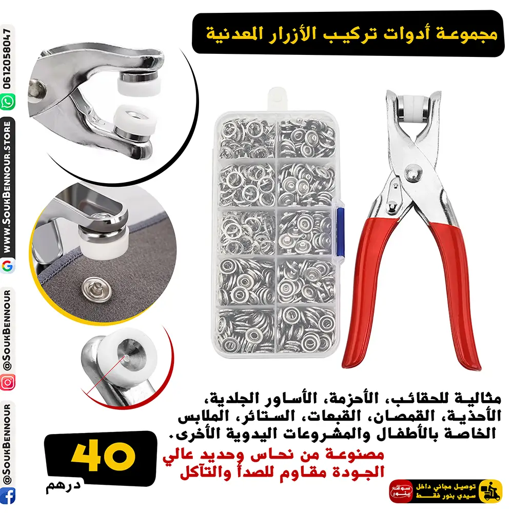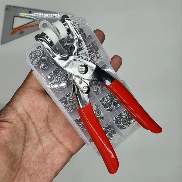 اصنع تصاميمك الخاصة بسهولة مع مجموعة أدوات تركيب الأزرار والعُيون المعدنية (Eyelets) الاحترافية.