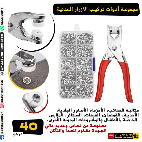 اسم المنتج: مجموعة أدوات تركيب الأزرار والعُيون المعدنية