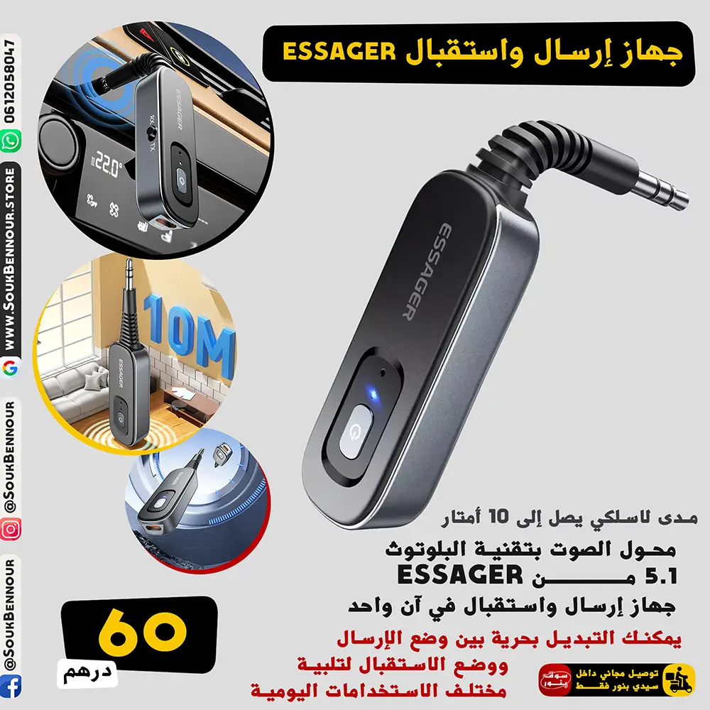 💡 محول ESSAGER Bluetooth 5.1 هو الخيار المثالي لمن يبحث عن أداء قوي، حجم صغير، ومرونة عالية في الاتصال بكل الأجهزة السلكية واللاسلكية.