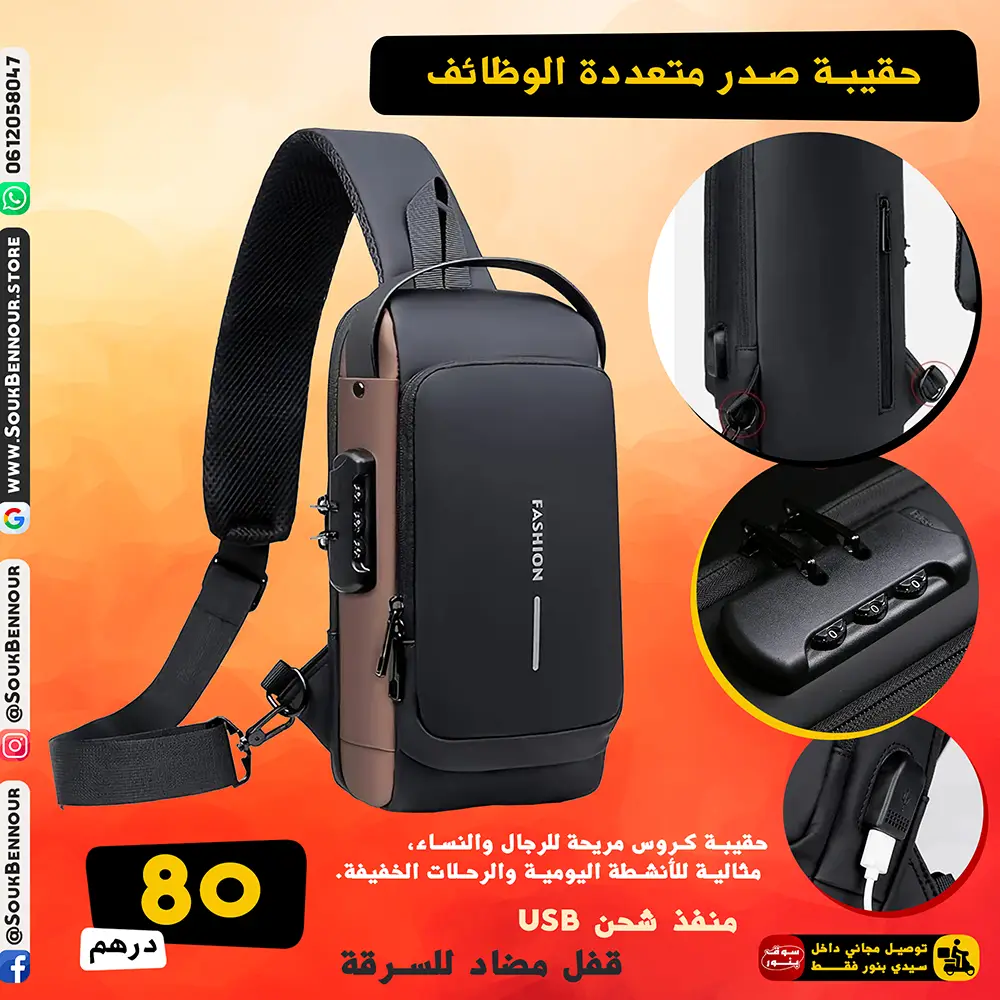 أضف لمسة من العملية والأناقة إلى يومك مع هذه الحقيبة العصرية المصممة لتناسب أسلوب الحياة السريع. سواء للاستعمال اليومي، العمل، الدراسة أو السفر، تمنحك هذه الحقيبة راحة في الحمل وتنظيمًا مثاليًا للأغراض، مع ميزات حديثة تزيد من سهولة الاستخدام والأمان.
