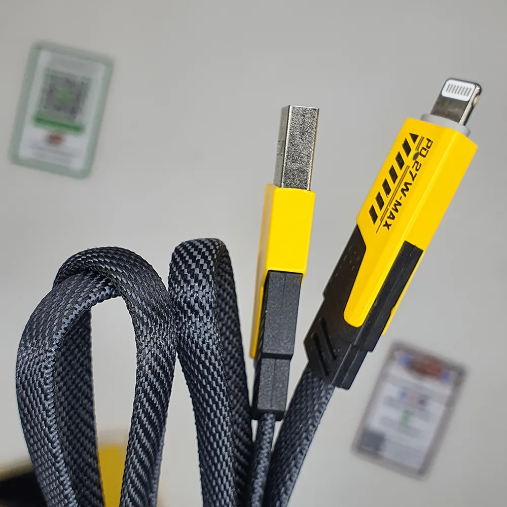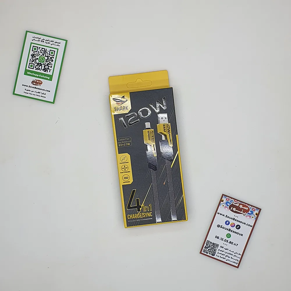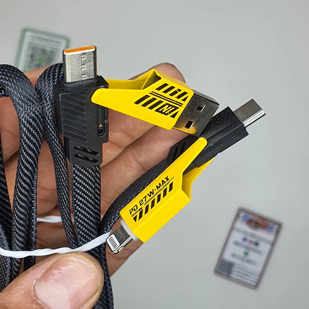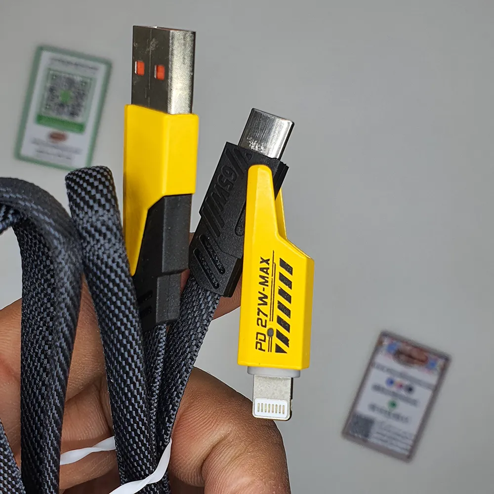 احصل على كابل واحد يغنيك عن حمل عدة كابلات! هذا الكابل الذكي 4-في-1 مصمم ليمنحك تجربة شحن ونقل بيانات أسرع، مع توافق واسع يناسب جميع أجهزتك اليومية. مثالي للسفر، السيارة، المكتب، والبيت.