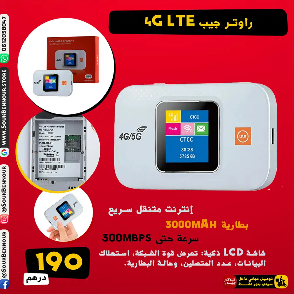 راوتر جيب 4G LTE – إنترنت متنقل سريع • بطارية 3000mAh • يدعم الشريحة SIM • سرعة حتى 300Mbps
