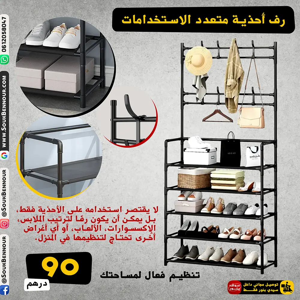 يمكن وضعه في أي مكان داخل المنزل أو خارج الغرفة، سواء في خزانة الملابس أو بجانب الباب، ليس فقط لتخزين الأحذية، بل لتنظيم الملابس، القبعات، الألعاب، والملحقات الصغيرة.