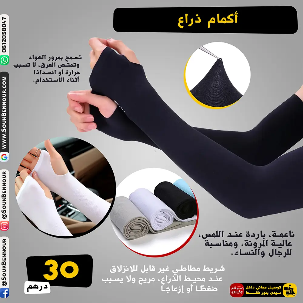 ☀️ أكمام ذراع تبريد وحماية من الأشعة فوق البنفسجية (Ice Silk)