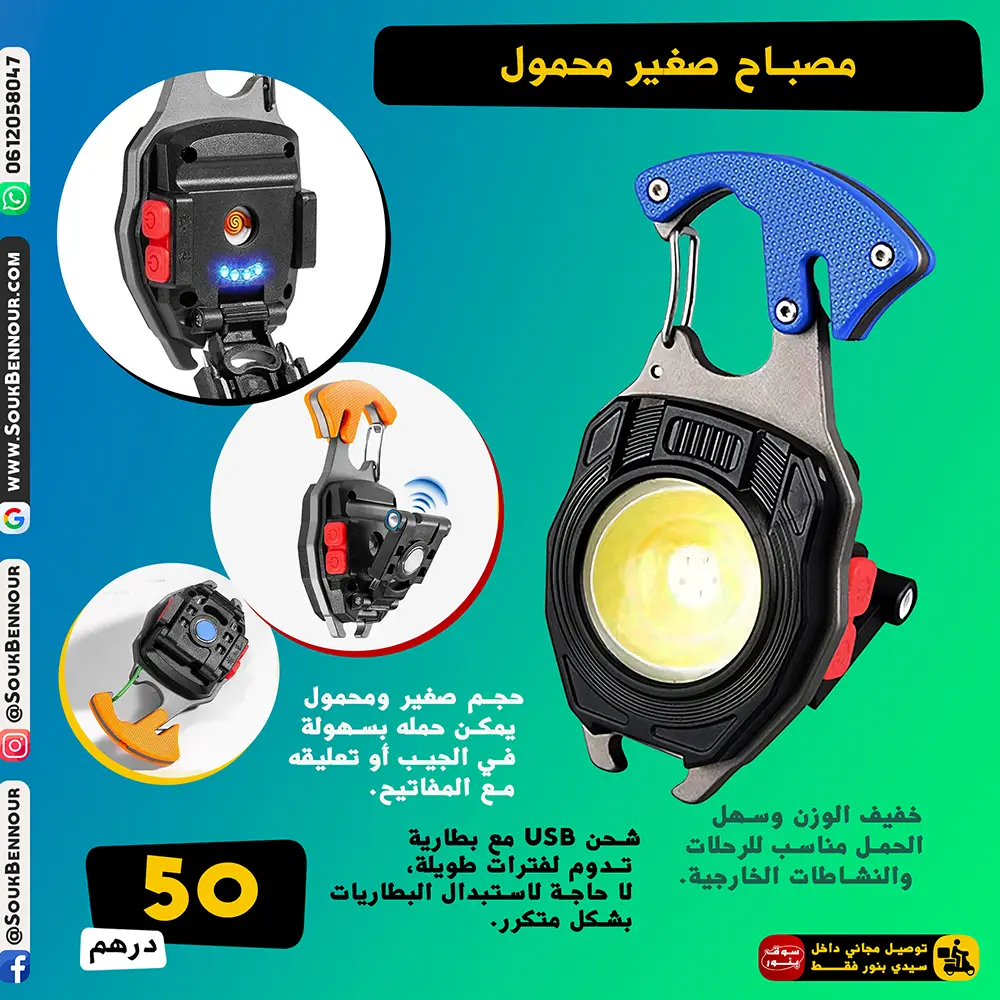مصباح صغير محمول مع سلاسل مفاتيح – USB، مضاد للماء، إضاءة للطوارئ والمغامرات
