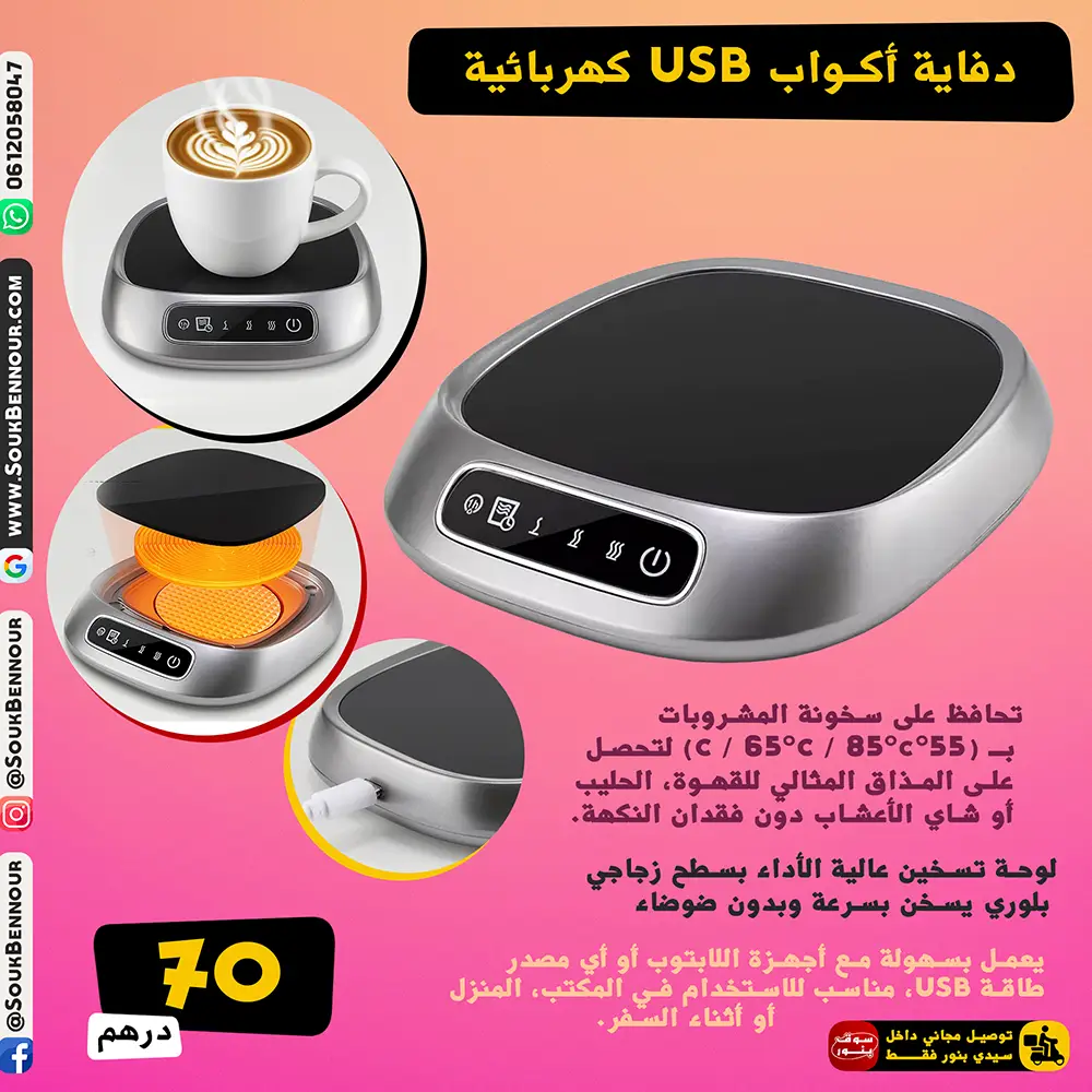 دفاية أكواب USB كهربائية – للحفاظ على حرارة القهوة والشاي والحليب في المنزل والمكتب