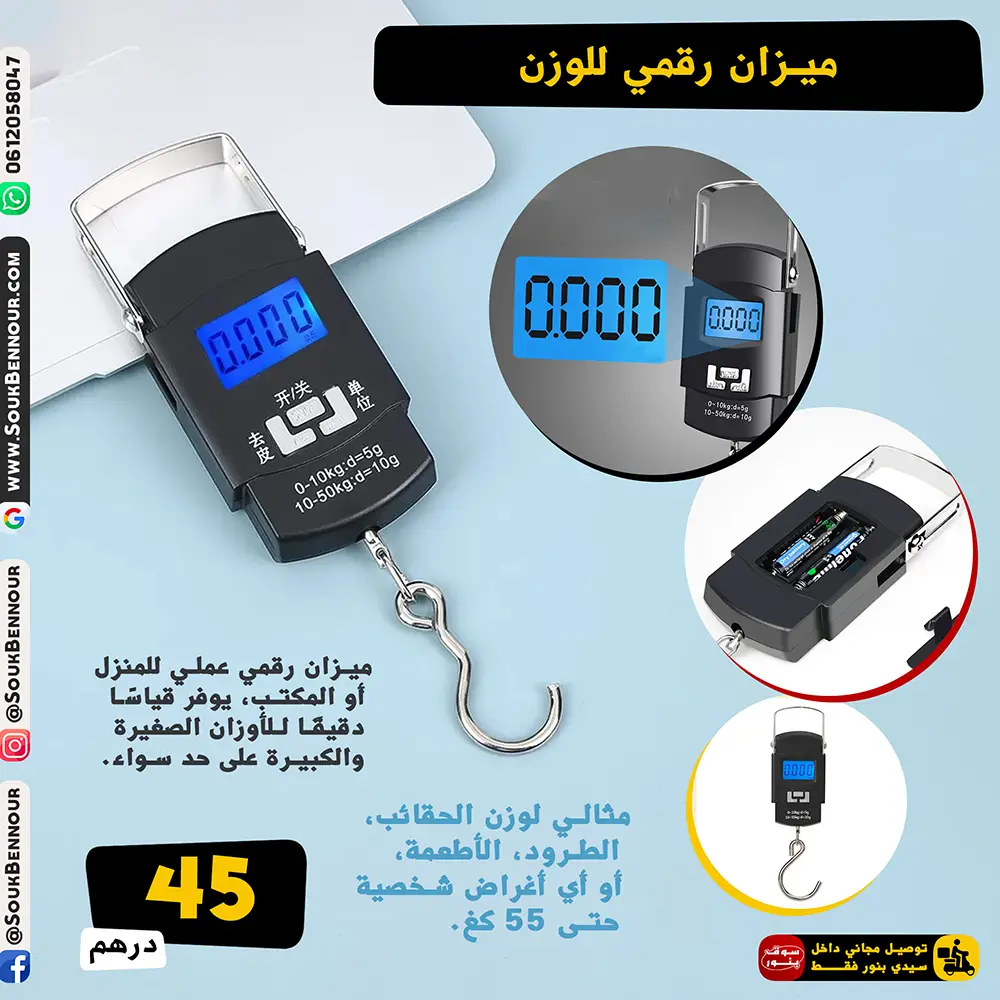 ميزان رقمي للوزن حتى 55 كغ – دقة عالية وسهل الاستخدام
