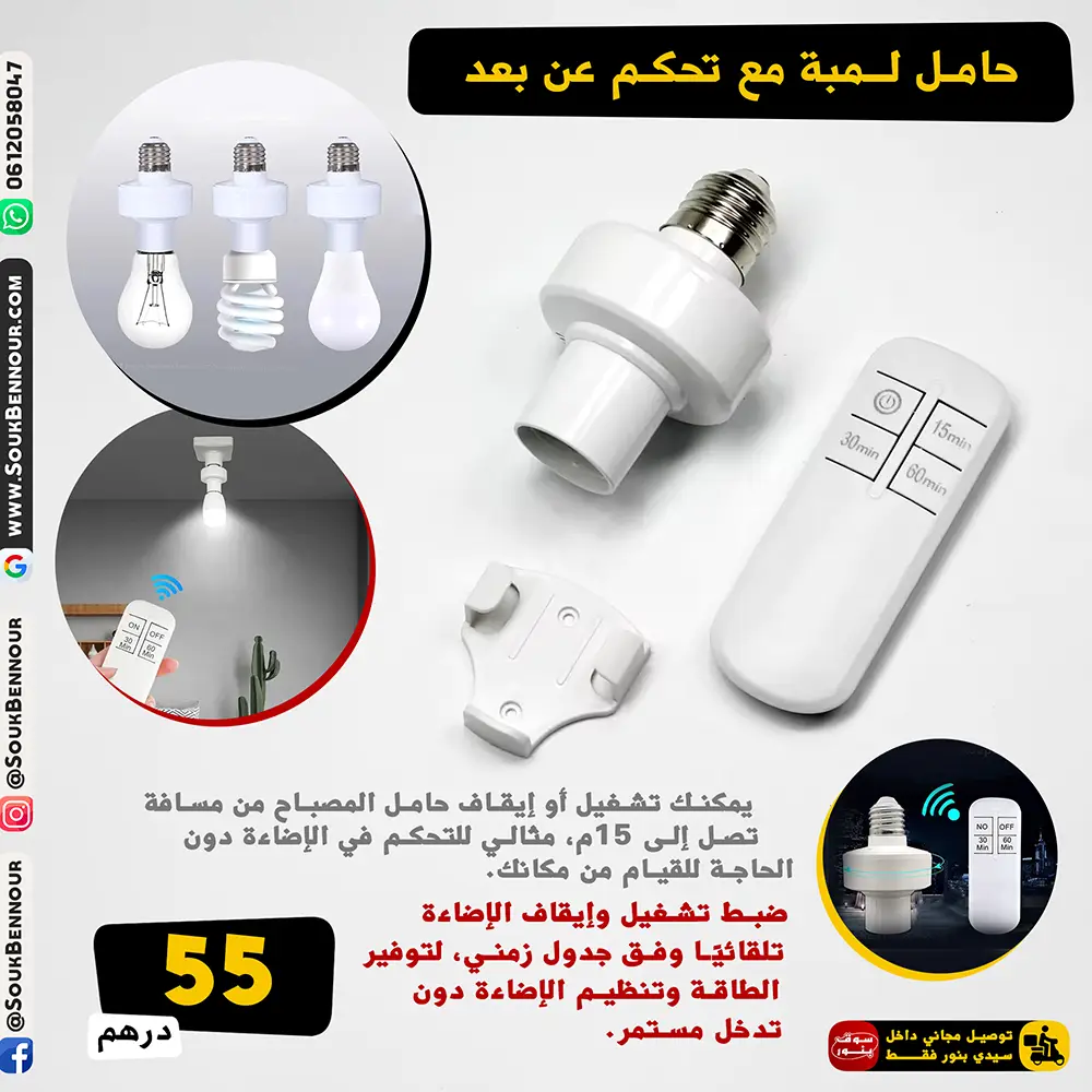حامل لمبة LED ذكي E27 مع تحكم عن بعد ووظيفة التوقيت