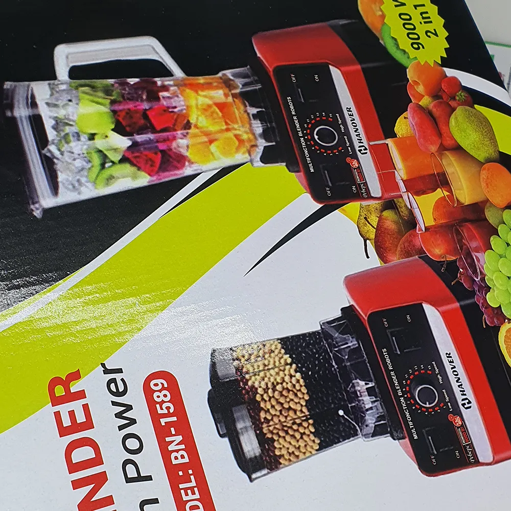 أداء قوي: خلاط بقدرة 9000 واط لتقطيع وطحن جميع أنواع المكونات بسرعة وكفاءة.