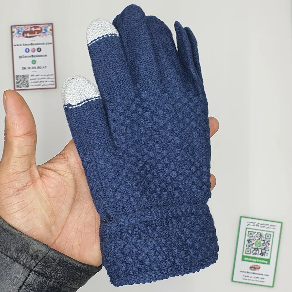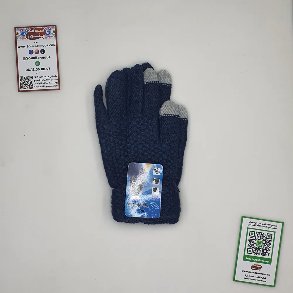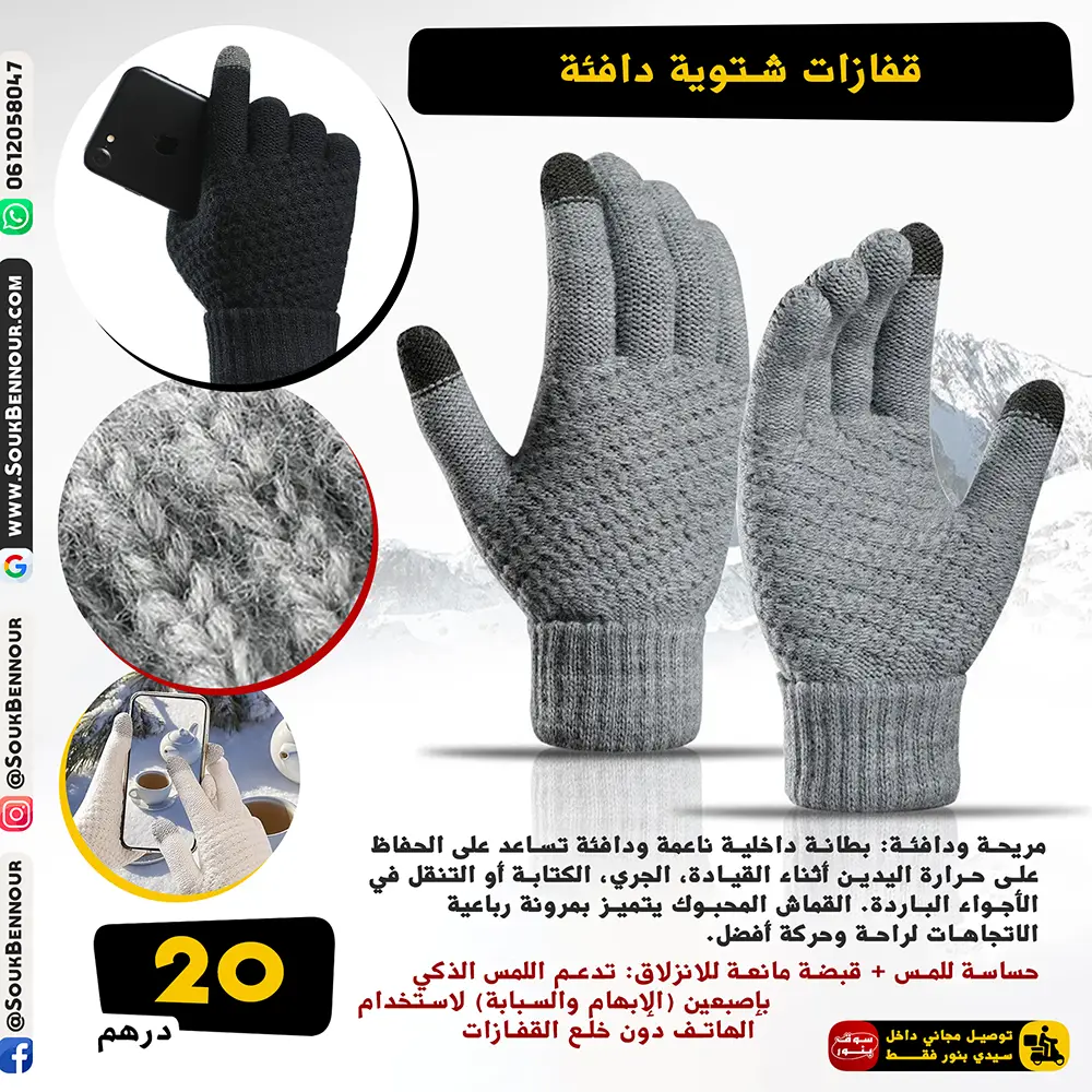 قفازات عملية مصممة لتوفير الدفء والراحة مع إمكانية استخدام الهاتف بسهولة أثناء الطقس البارد.