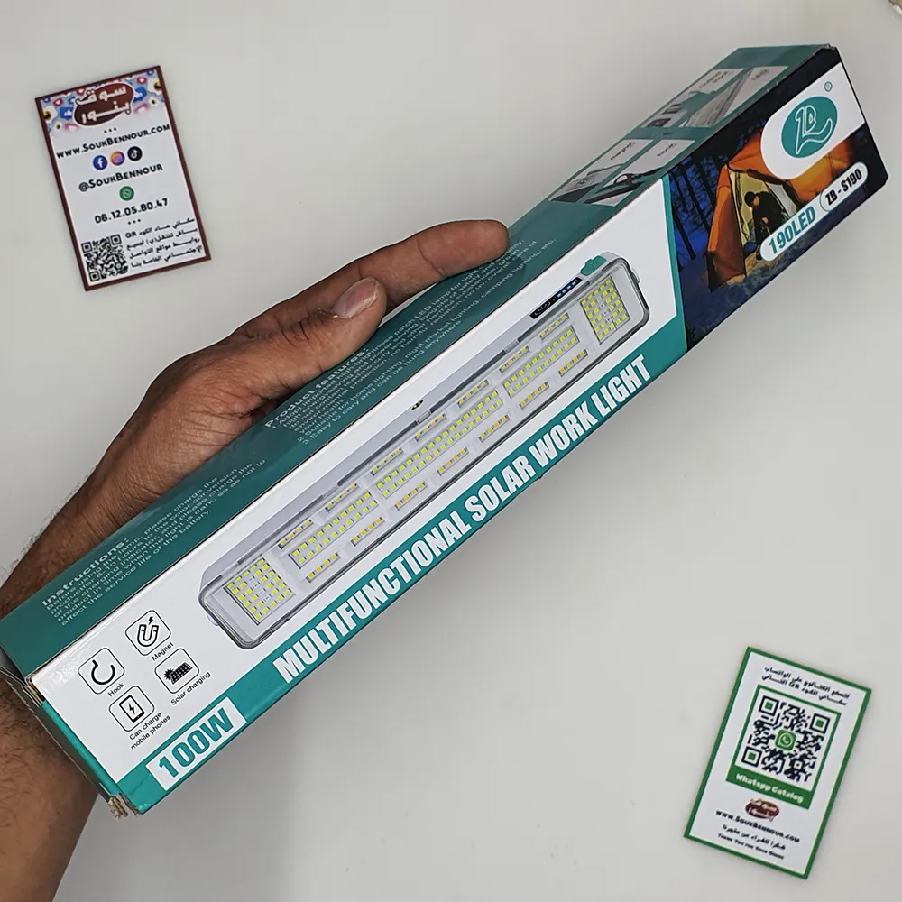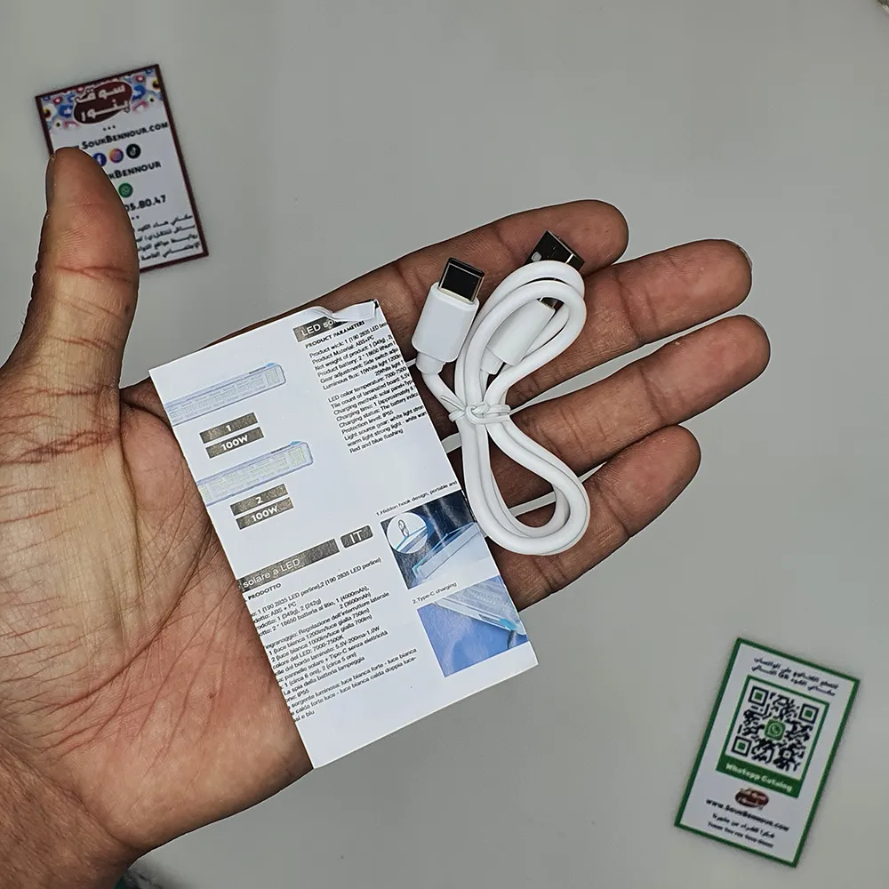 🔦 مصباح LED شمسي متعدد الاستعمالات 100 واط – شحن شمسي وUSB