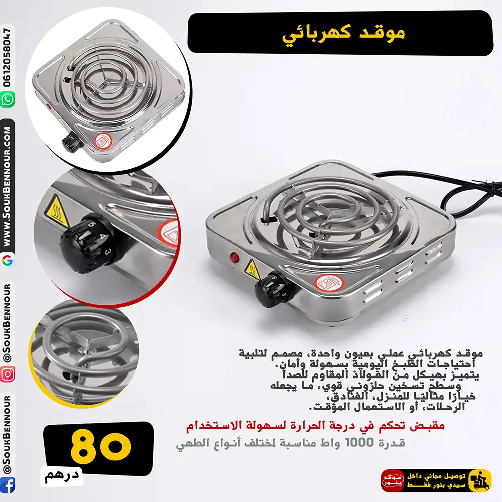 ⚡ قدرة 1000 واط مناسبة لمختلف أنواع الطهي
