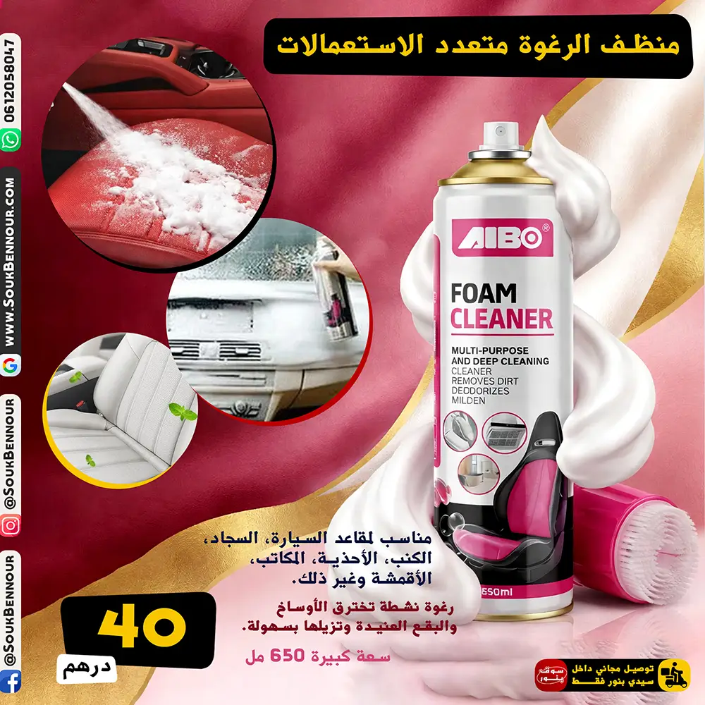 اكتشف السر وراء النظافة اللامعة مع منظف الرغوة متعدد الاستعمالات AIBO، الحل العملي والفعال لإزالة الأوساخ الصعبة والروائح الكريهة من مختلف الأسطح.
