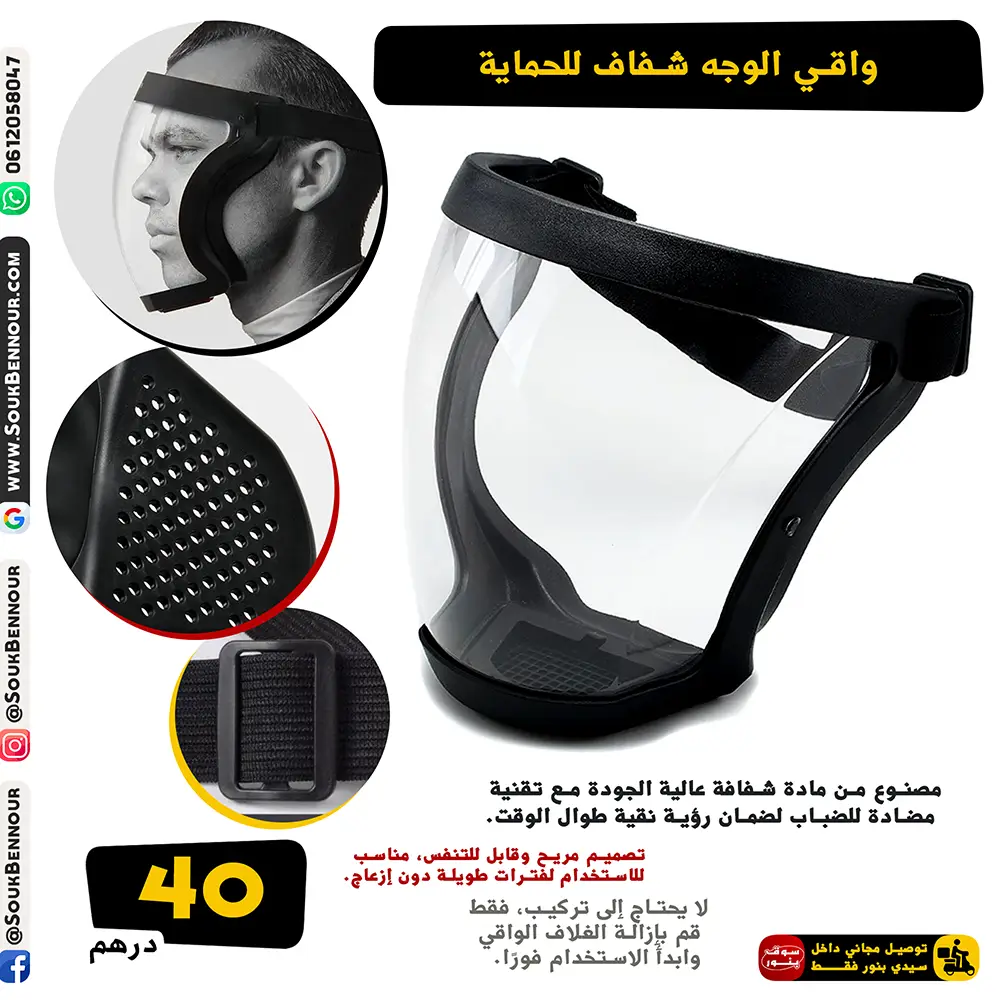 🛡️ واقي وجه شفاف للحماية – خفيف ومريح للاستخدام اليومي