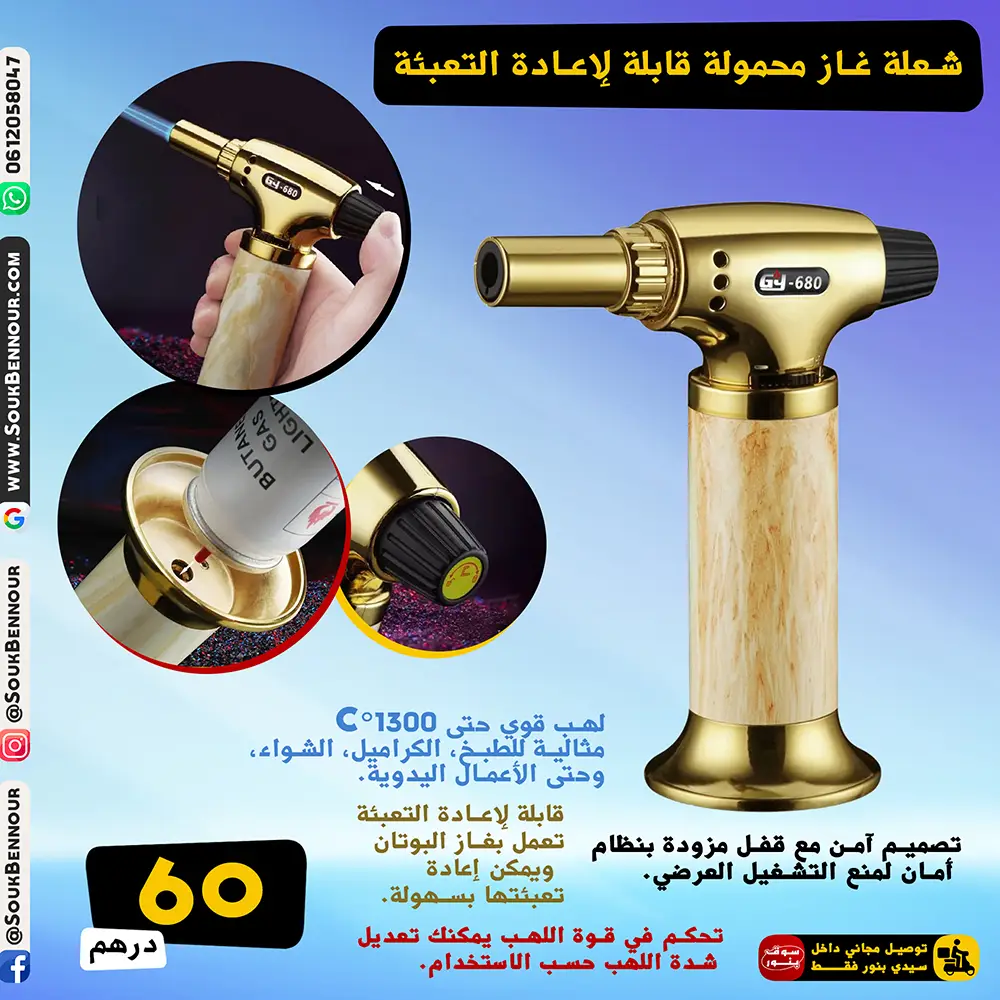 🔥 شعلة غاز محمولة قابلة لإعادة التعبئة – قوية ومتعددة الاستخدامات