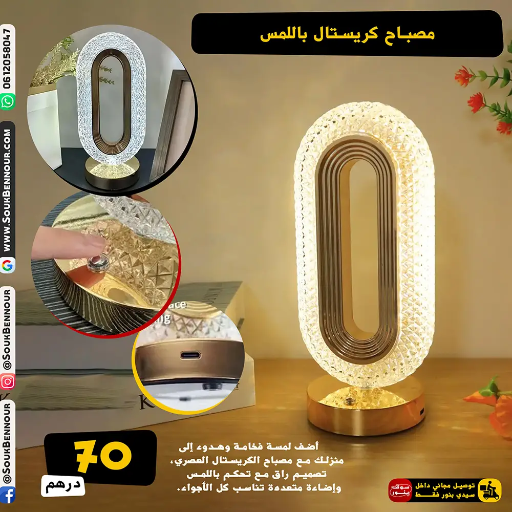 أضف لمسة فخامة وهدوء إلى منزلك مع مصباح الكريستال العصري، تصميم راقٍ مع تحكم باللمس وإضاءة متعددة تناسب كل الأجواء.