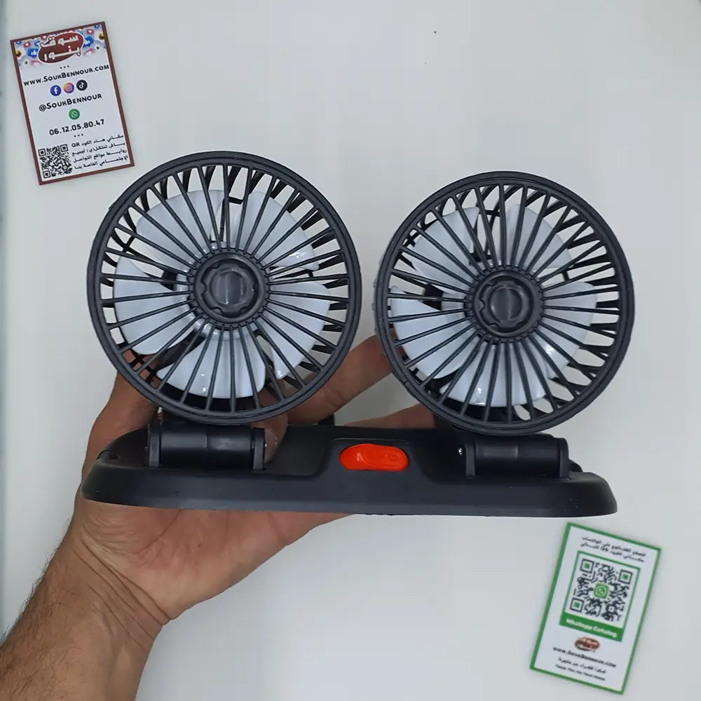تغلّب على حرارة الصيف داخل سيارتك مع مروحة السيارة المزدوجة، تصميم عملي يوفر تدفق هواء منعش للسائق والراكب في نفس الوقت.