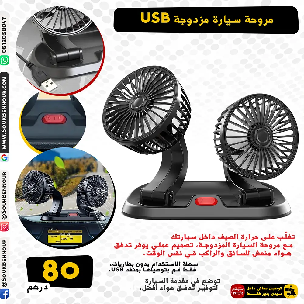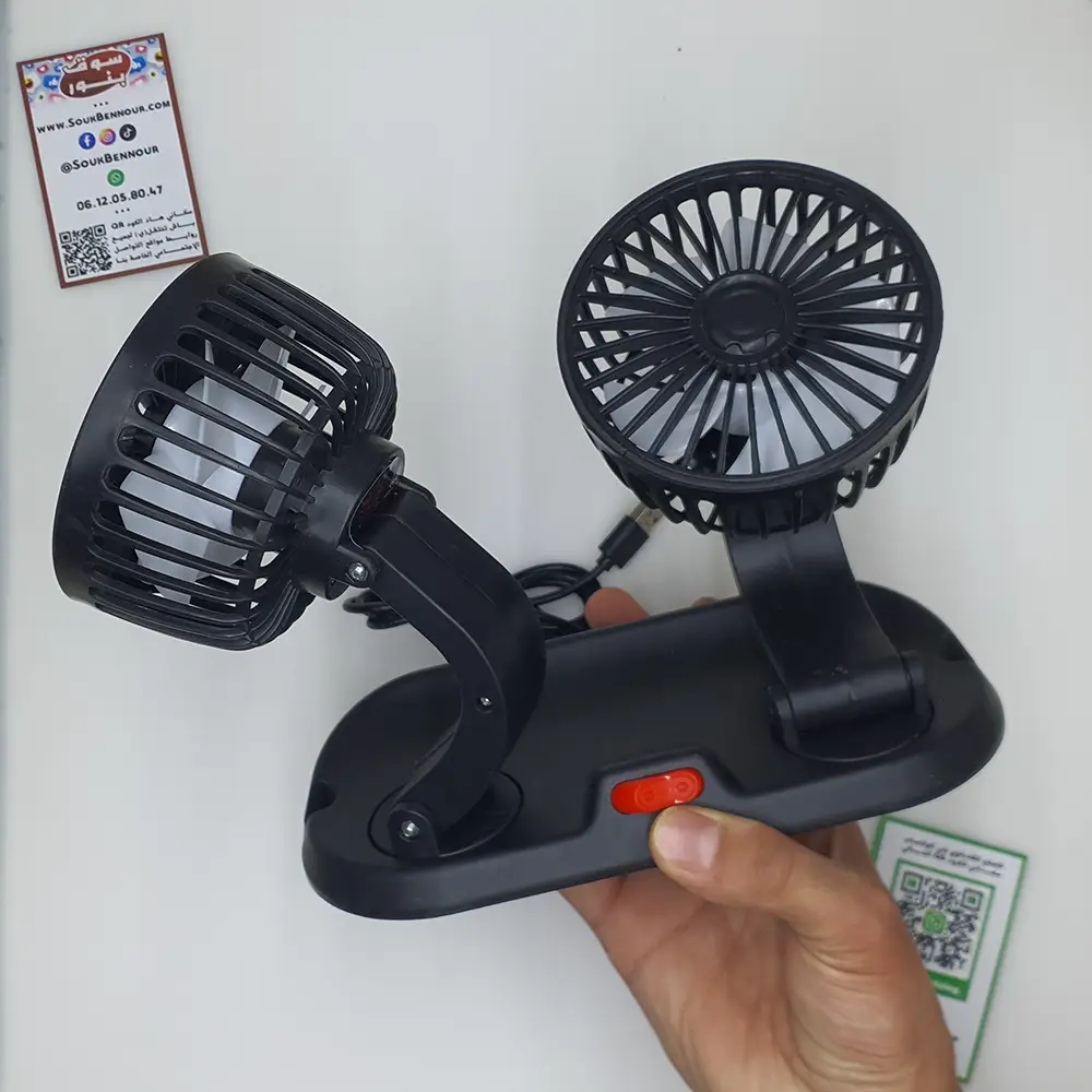 🚗 مروحة سيارة مزدوجة USB – تبريد قوي ومريح في كل رحلة